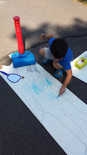 He didn't want to "do preschool," and instead wanted to play outside... which actually lent perfectly to what I had planned... so I let him think he won ;)
